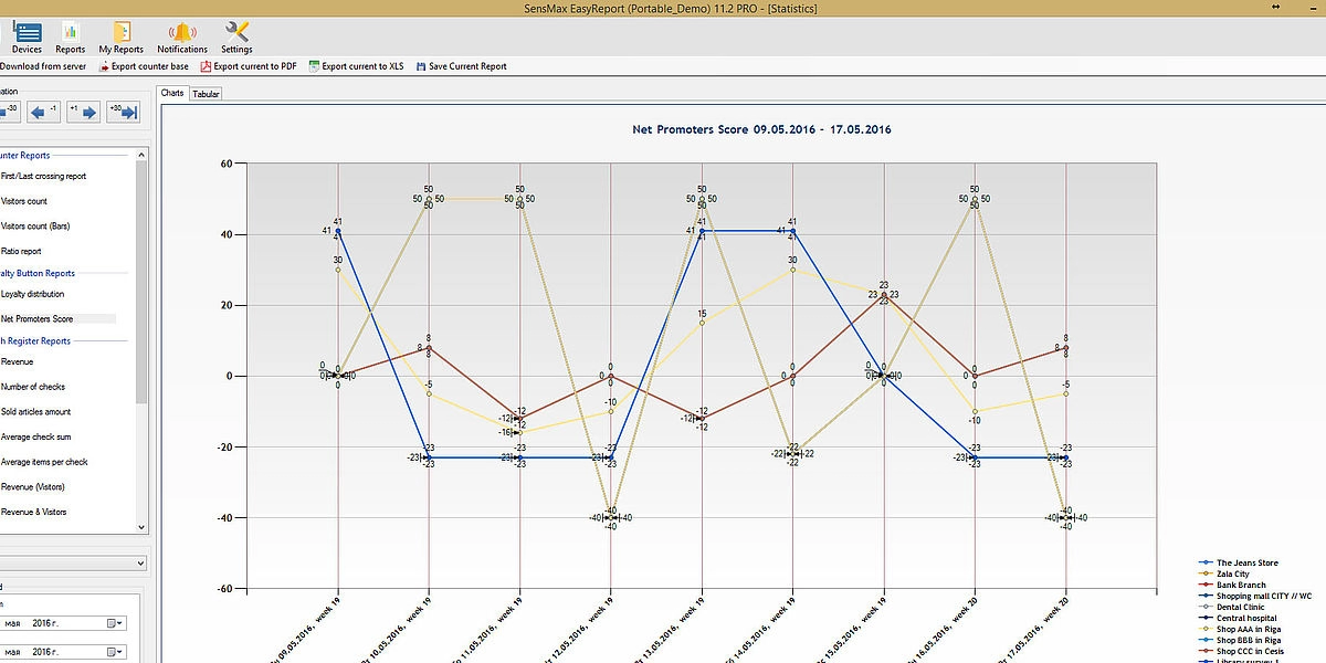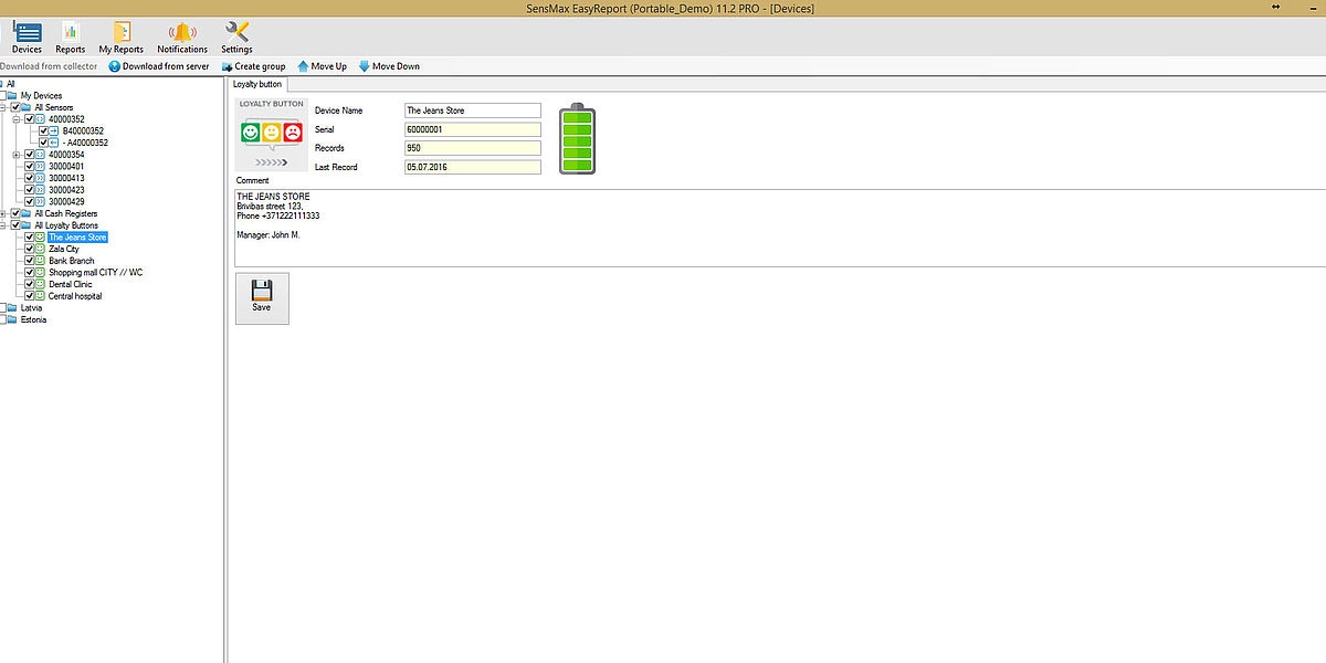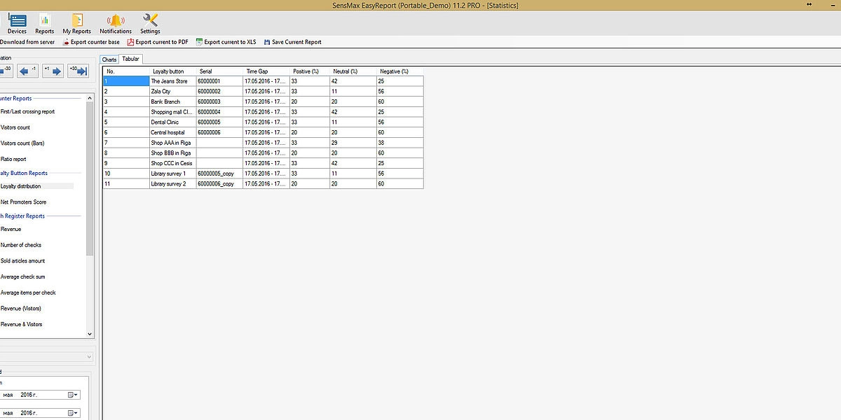 Kyselypainikkeiden tilastotiedot toimitetaan keskitettyyn tietokantaan Internetin kautta SensMax SMX -yhdyskäytävien avulla. Yksi yhdyskäytävä voi palvella jopa 20 langatonta kyselypainiketta 800 m kantamalla. Voit tarkastella kävijävastausten tilastoja verkkopohjaisessa raportointipalvelussa tai asentaa raportointiohjelmiston paikalliselle tietokoneelle. Jos on tarve integroida kävijäkyselydata mihin tahansa kolmannen osapuolen raportointityökaluun, se on mahdollista, sillä SensMax-ohjelmisto tukee datavientiä XML-, CSV- ja MySQL-muodoissa sekä API- ja MQTT-datavientiä verkkointegraatioita varten.