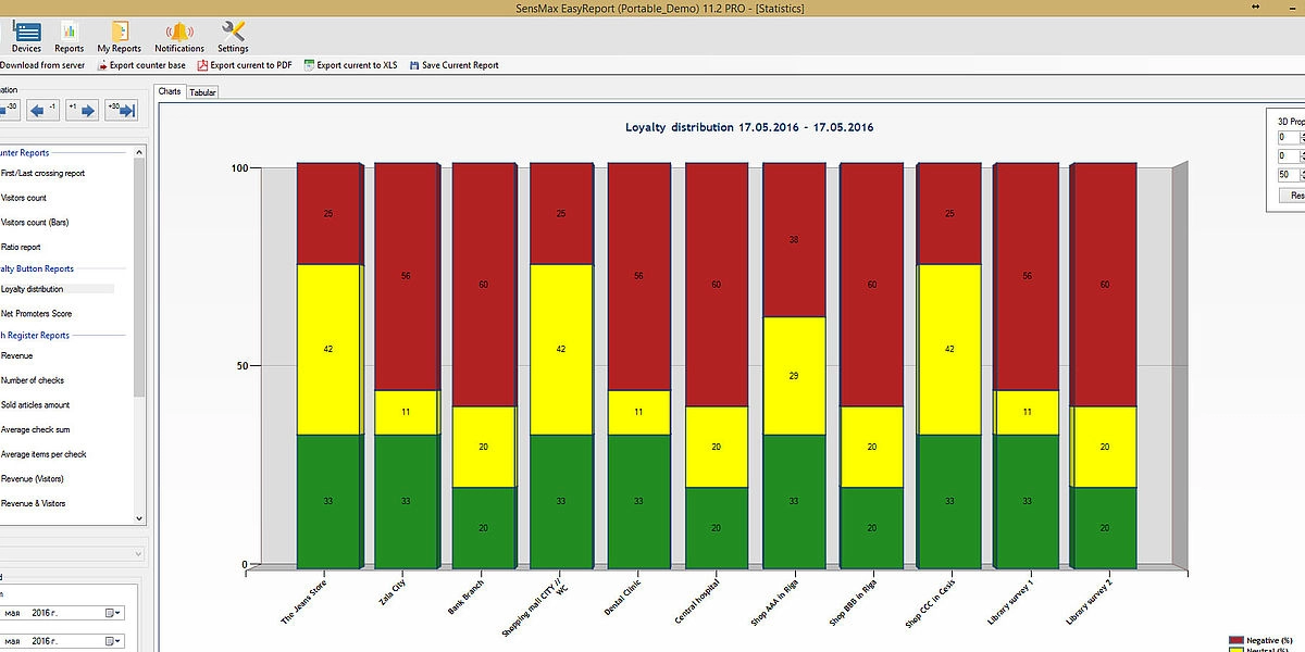 Kävijäkyselyjärjestelmän tilastotiedot käsitellään SensMax EasyReport -sovelluksessa tai SensWeb-pilviraportointialustalla. Paikallinen asiakaskyselyohjelmisto mahdollistaa kyselydatan integroinnin mihin tahansa 3. osapuolen raportointityökaluun. SensMax EasyReport näyttää kävijäkyselyn tulokset graafisina ja taulukkomuotoisina raportteina jokaisesta WC-tilasta tai tilaryhmästä. Voit tarkastella päivittäisiä yhteenvetoja kaikista vastauksista tai seurata trendejä 5 minuutin jaksoissa, jos käytössä on reaaliaikaiset kävijäkyselypainikkeet. Kyselydata on yhteensopivaa SensMaxin ihmislaskentajärjestelmän kanssa, joten voit tarkastella kävijämäärätilastoja ja palautteita yhdistetyissä raporteissa. Langaton kävijäkyselypainike on helppo asentaa ilman kaapelointia.